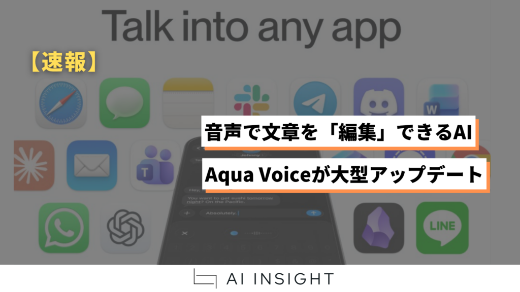 【速報】音声で文章を「編集」できるAI、 Aqua Voiceが大型アップデート