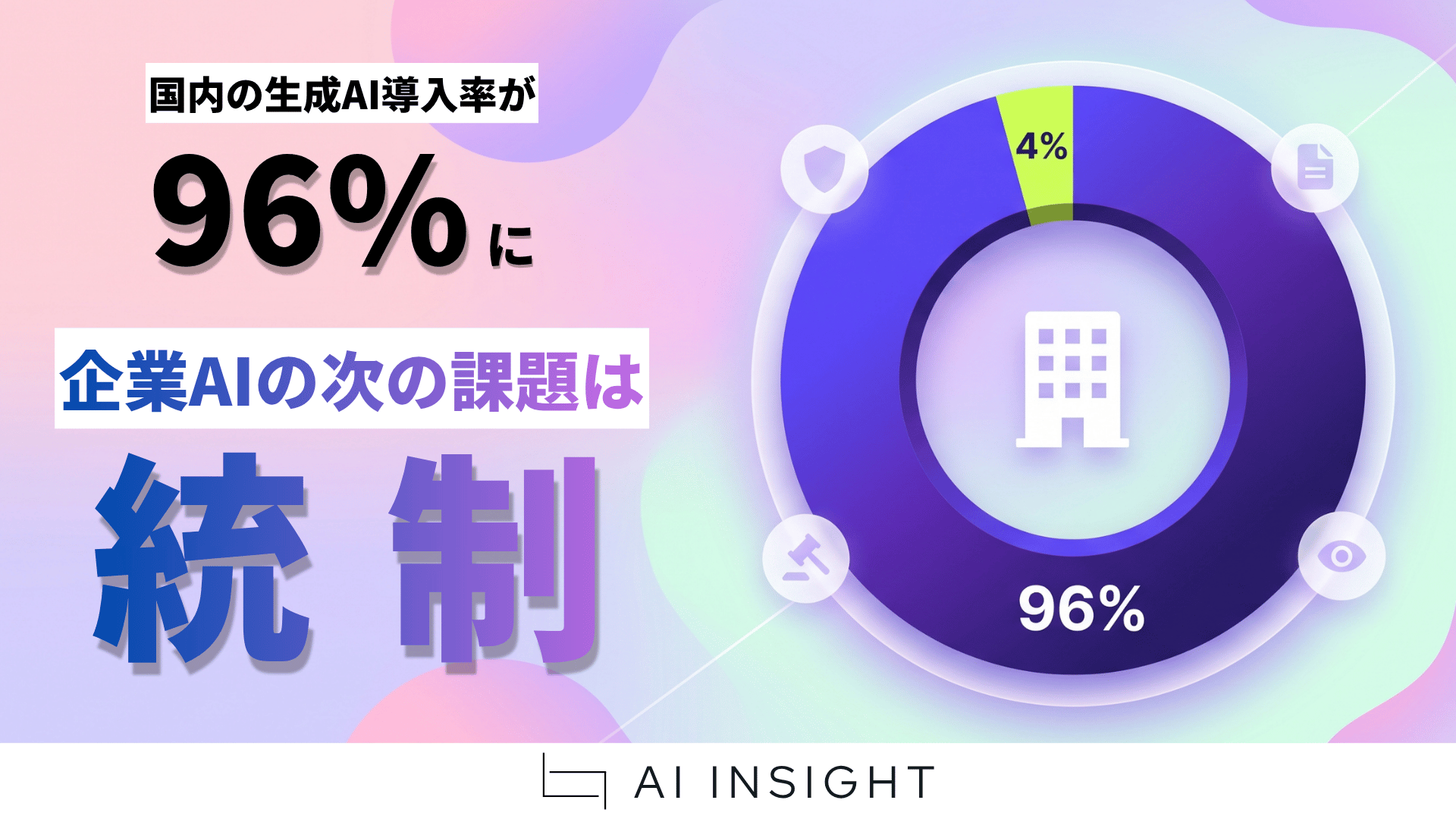 大企業における生成AIの導入率は96%に達し、すでに「実験」ではなく「日常業務のツール」となっている。一方で企業の関心は、導入そのものから「統制(ガバナンス)」へと移りつつある。生成AIのルール整備や法務確認、ベンダー審査など、企業AIを安全に運用するための体制づくりが新たな課題となっている。