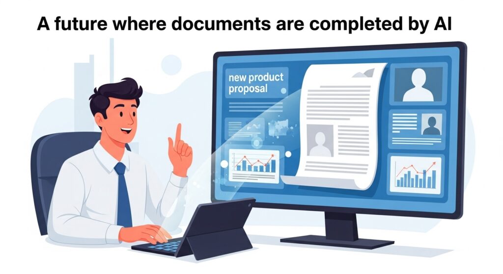 まさに“AIに丸投げ”でプロ文書ができあがる世界が現実味を帯びてきたのです。これは資料作成に費やされていた莫大な時間(ある調査ではビジネスパーソンの60%が資料作成に時間を取られているとも)を大幅短縮しうるもので、使いこなせば8時間の作業が8分になるとも謳われています。