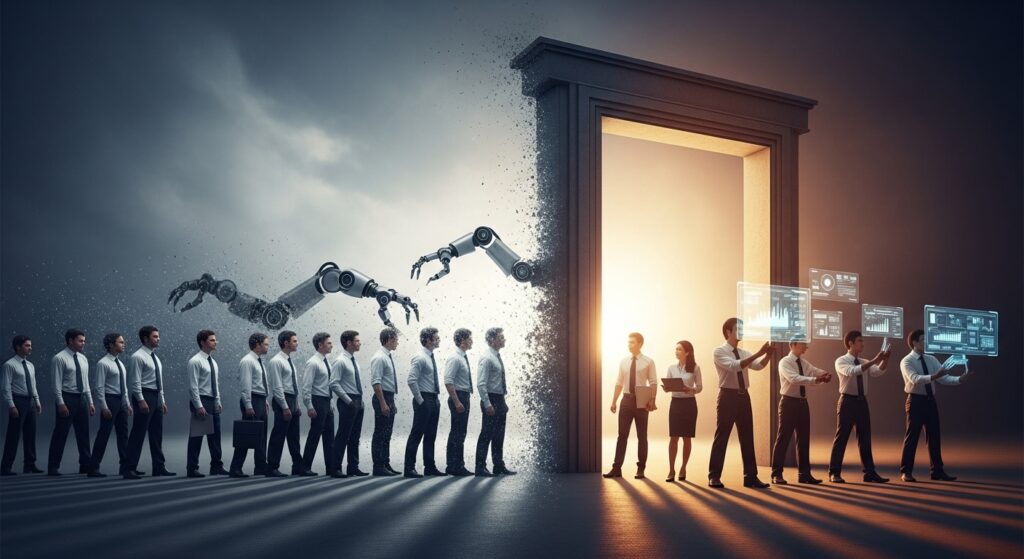 まず削減されたのは 「手順が明確・言語ベースで完結」 する業務だ。FAQ オペレーター、テストスクリプト作成者、ローコード開発者などが真っ先にリストラ対象になった一方、これらを統合運用する AI プラットフォーム管理者・プロンプトアーキテクト・倫理監査人 の求人は急増している。