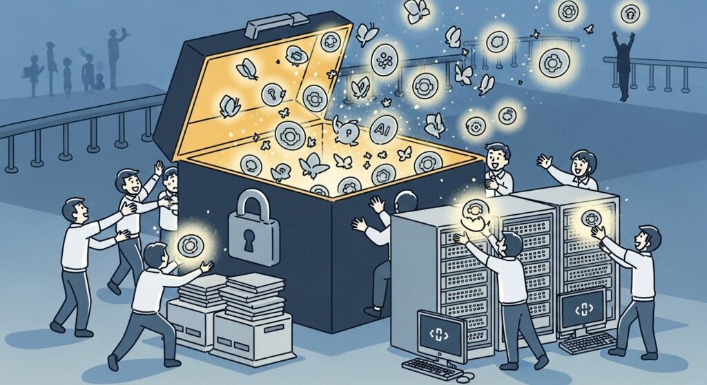 巨大資本は AI へ雪崩れ込み、反対側で OSS 化の波が受け皿を拡張する――中央集権と分散化が同時進行 する混沌の一週間だった。