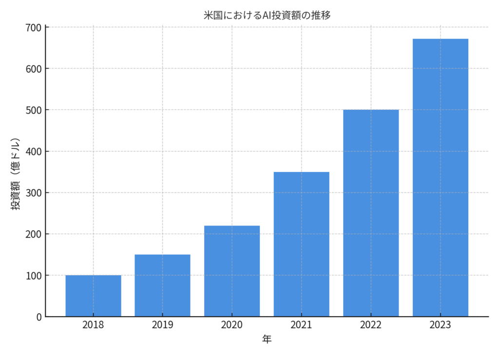 スタンフォード大学のAI Index Report 2024によると、2023年の米国民間AI投資額は約672億ドルで、中国の約8倍に上ります※2。これはAIが経済活動の中心に据えられつつあることを示しています。