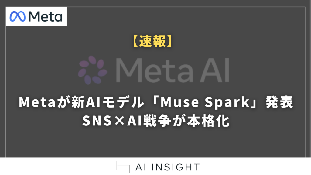 本記事を10秒でまとめると Metaが新しいAIモデル「Muse Spark」を発表。これは同社が新設した「Meta Superintelligence Labs」による初のAIモデルで、Instagram、FacebookなどMetaの主要サービスに統合される予定。SNSプラットフォームにAIを常駐させる戦... -