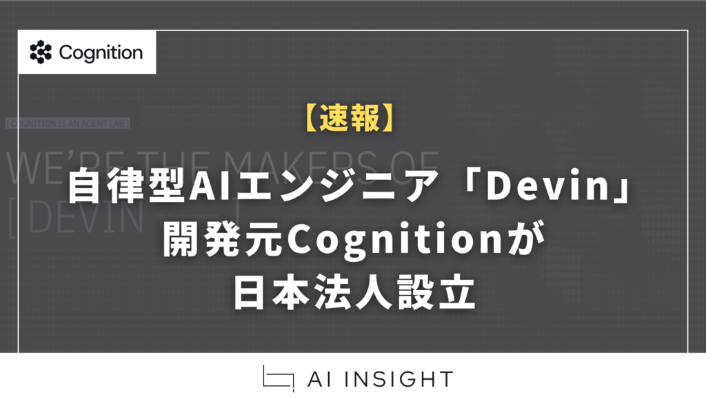 【速報】自律型AIエンジニア「Devin」開発元Cognitionが日本法人設立