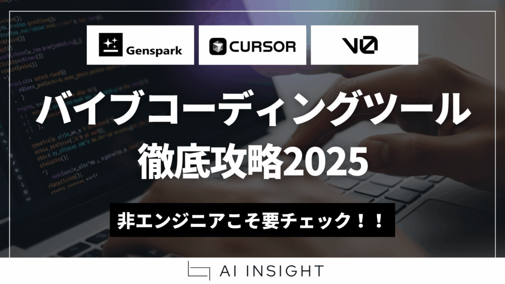 【Genspark / Cursor / v0】非エンジニアこそ要チェック – バイブコーディングツール徹底攻略20252025年、Genspark AI Developerのような「コーディングAIエージェント」の登場は、ソフトウェア開発の世界に衝撃を与えました。「自然言語だけでアプリが作れる」という未来的な響きに、心躍らせた方も多いのではないでしょうか。 しかし、市場にはCursor...