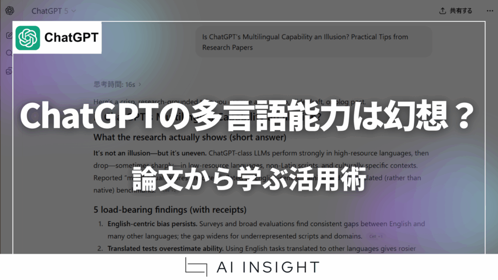 ChatGPTの多言語能力は幻想?論文から学ぶ活用術本記事を10秒でまとめると 大規模言語モデル(LLM)は英語での複雑な推論は得意だが、他の言語では性能が著しく低下することがカリフォルニア大学バークレー校の研究で判明。 単純なモデルの巨大化では解決せず、少量の翻訳データによる追加学習が有効であ...