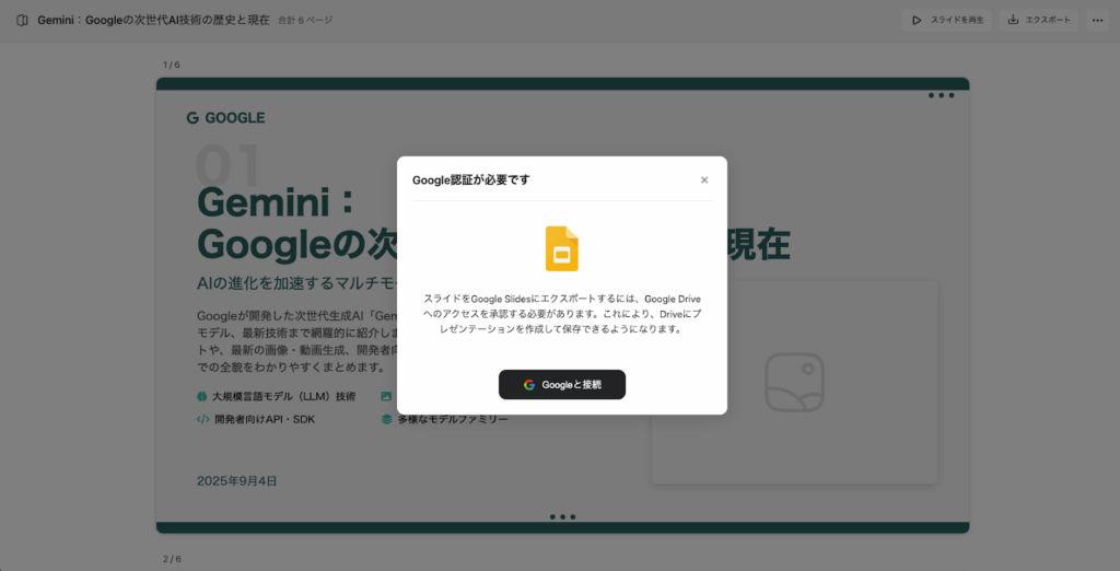 指示だけで数分で資料を自動生成し、Googleスライドにレイアウト崩れなく完全エクスポート可能に。資料作成の常識が変わる革命的な進化を徹底レポートします。