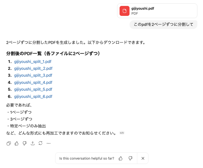 今回は11ページある資料を2ページずつに分割させてみます。