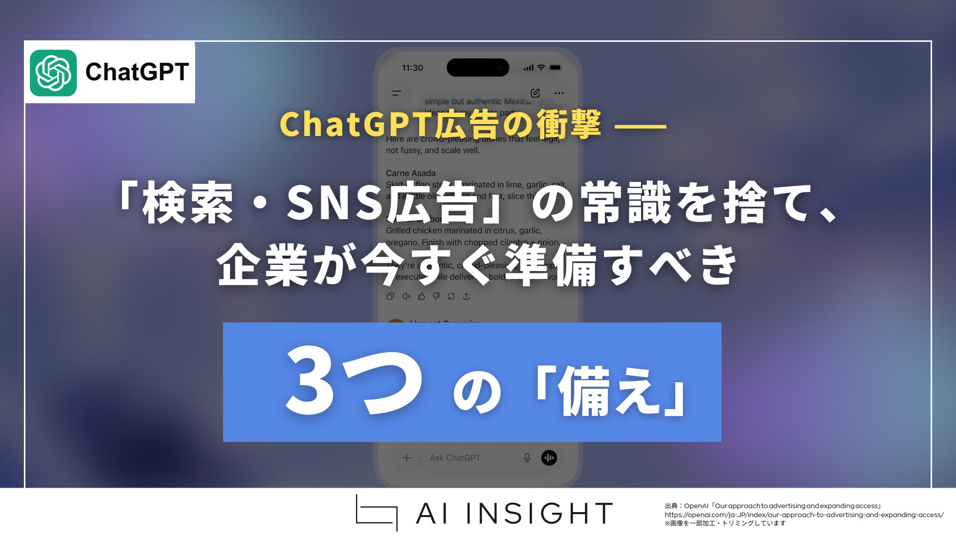 - OpenAIが「ChatGPT Go」とともに広告導入を発表。Web広告は「検索・SNS型」から「対話型」への過渡期を迎える。