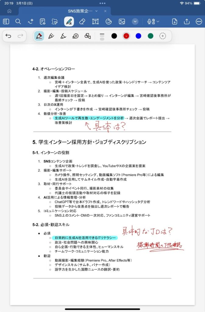 • 会議中は普通に手書き