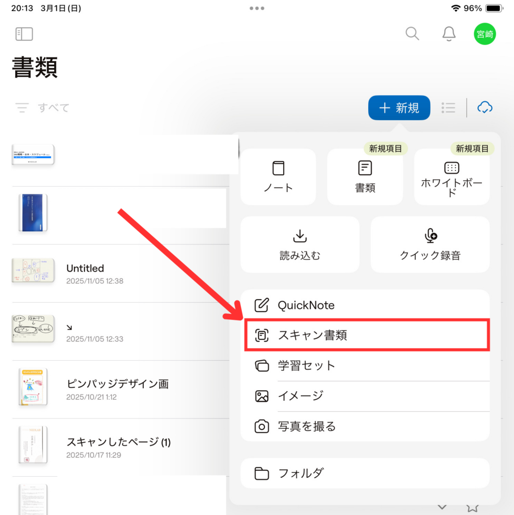 まずは紙の資料をもらった際に速やかにiPadのGoodNotesの「スキャン書類」機能で読み込んでみましょう。