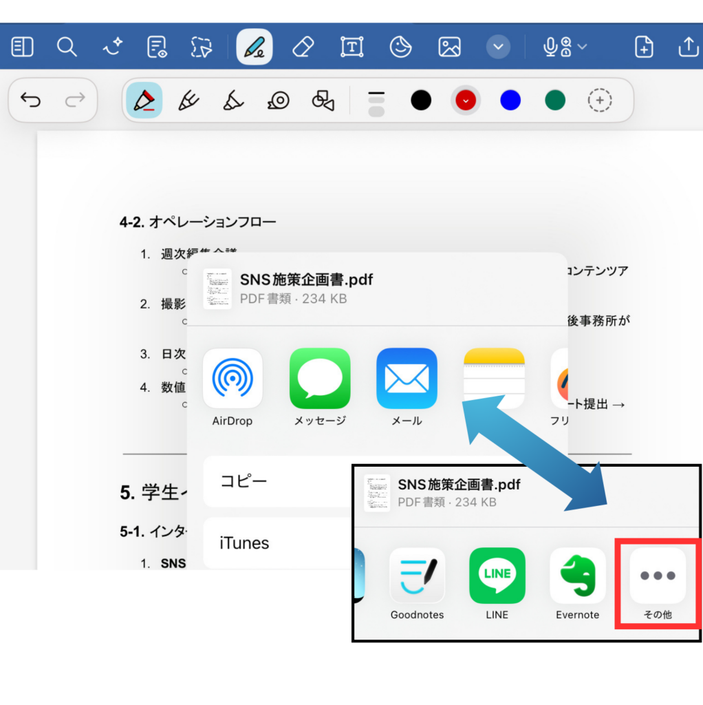 GoodNotesを利用している方もStep2まではよく活用しているのではないでしょうか?これからの時代はGoodNotesメモを取った後は「PDFで書き出し → Google Drive」が基本動線になります。