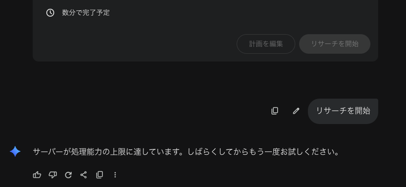 Gemini Deep Researchは調査前に調査計画を生成しますが、この時点で以下の問題があります: