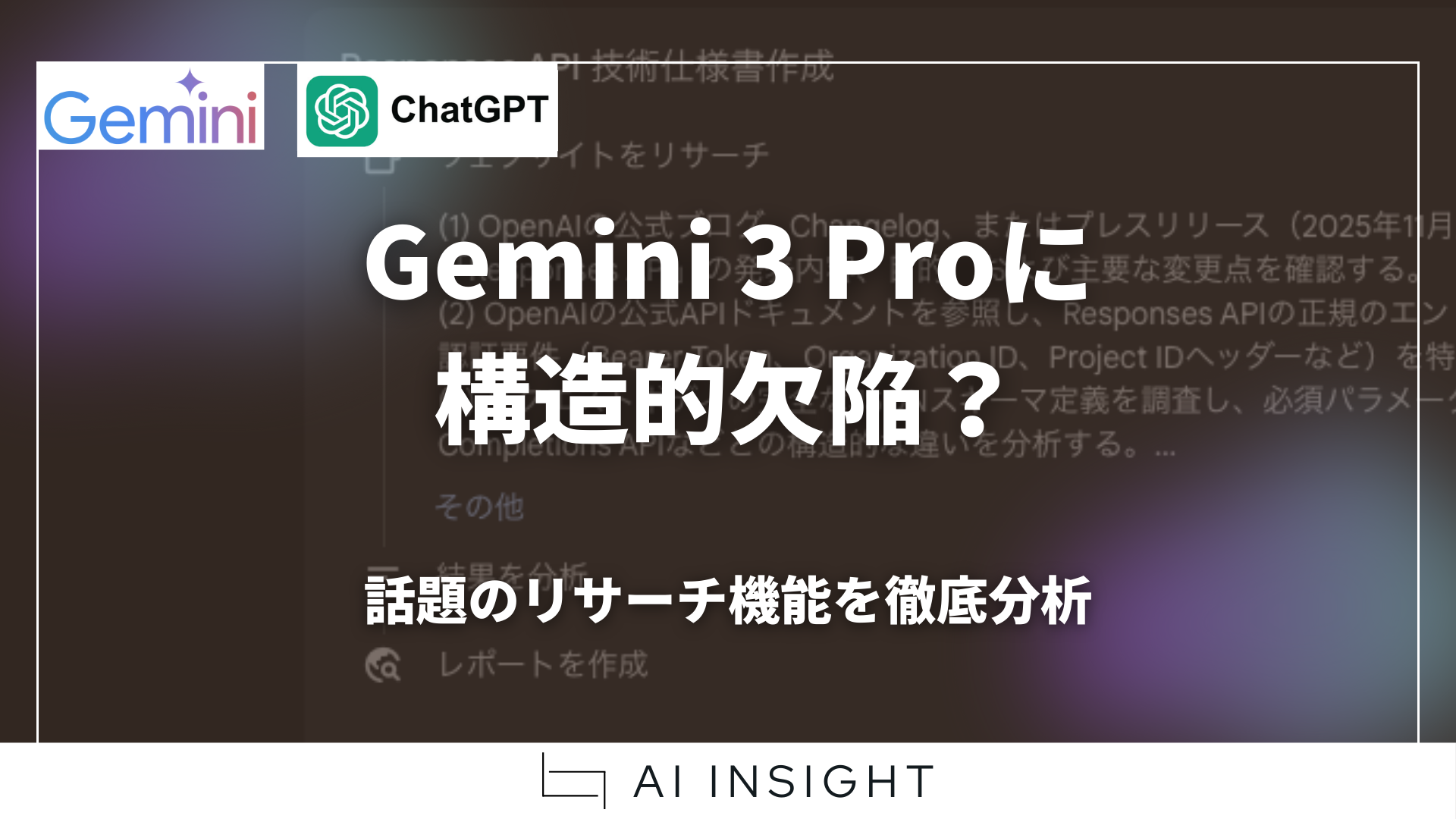 今後、Googleがこれらの制約を克服し、Gemini 3 Proの検索機能を改善できるかどうか、注視していく必要がありますが、現実的にはそれまでは高度な推論はGemini 3 Pro、リサーチ系はChatGPT 5.1と使い分けるのが最善でしょう。