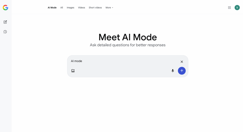 まず、Googleにアクセスすると、検索バーの下に「AI Mode」という新しいタブが表示されます。ここからAIモードでの検索が可能です。